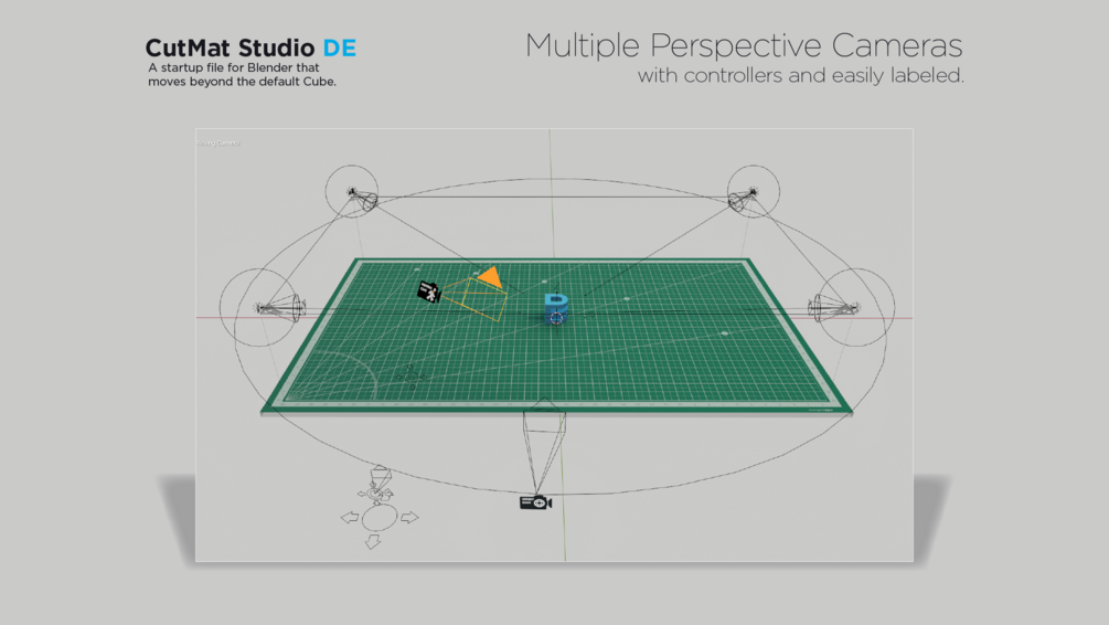 CutMat Studio is a full-feature startup file for Blender 2.9x-3.X AND NOW for 4.X + also with a new compositor! with default materials, objects, camera rigs, compositors and more to get things going quickly! Well documented, this will be a useful replacement for the default cube start file for new and experienced blenderers alike.